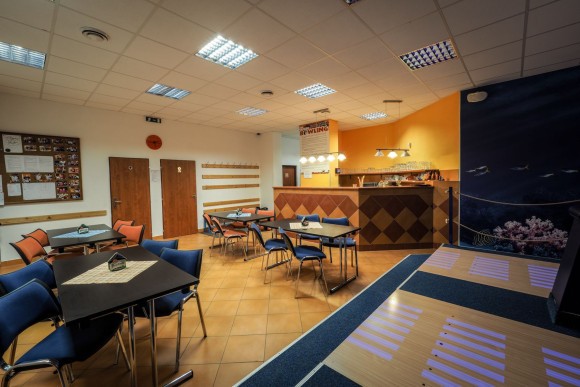 Zur Verfügung stehen Restaurant mit Kinderspielecke, Salon, Gartenlaube mit Grill (45 Plätze), Bowling (auch für Feiern, Hochzeiten, Schulungen und Firmatreffen geeignet).