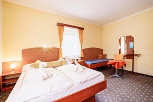Das Wellness-Hotel befindet sich in günstiger Lage in Franzensbad, nur ca. 5 Gehminuten von der Kolonnade und nur 1 Gehminute vom modernen Aquaforum. Den Gästen steht ein Stilrestaurant, eine Sommerterrasse, eine Wechselstube und Heilprozeduren - Balneo-Zone (Bäder, Massagen, Whirlpool, Packungen, Elektrotherapie, Parafin usw.). Sommer: Spaziergänge, Nordic Walking, Rad fahren, baden Winter: Skilaufen in der Umgebung, Skifahren im Erzgebirge (Bozi Dar, Klinovec) Umgebung: Burg Ostroh (Seeberg), historische Stadt Cheb, Naturschutzgebiet Slavkovsky-Wald, Schloss Kynzvart, Burg Loket